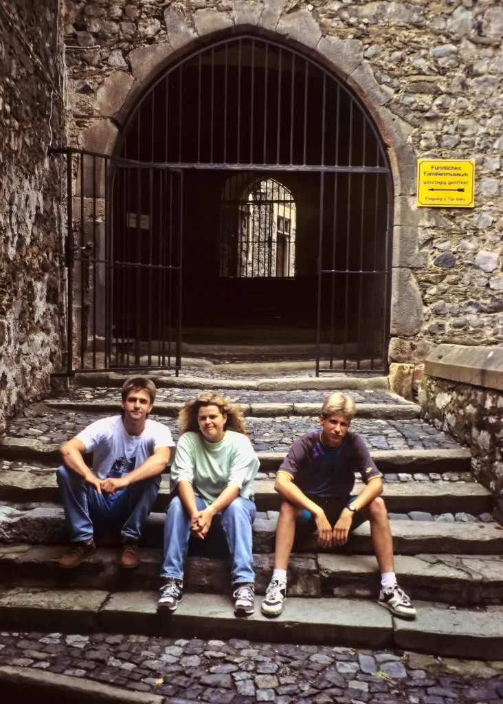 This was Holgar Gath, 19, and his cousin, Stefanie, 15. They were here to pick me up and head to Weilburg, which was an hour’s drive north of the station, to the family farm where everyone else was waiting. Reexamining a map later, it occurred to all of us that it would have been a lot easier if they had just driven to the Frankfurt Hbf to pick me up. It would have saved 40 minutes on a train, not to mention the struggle to extricate myself and my luggage from the carriage. A couple of weeks later when it was sadly time for me to leave, the train ticket provided by the Landjϋgen had me leaving from Wiesbaden. The Gaths just drove me to Frankfurt, and I caught the train there.