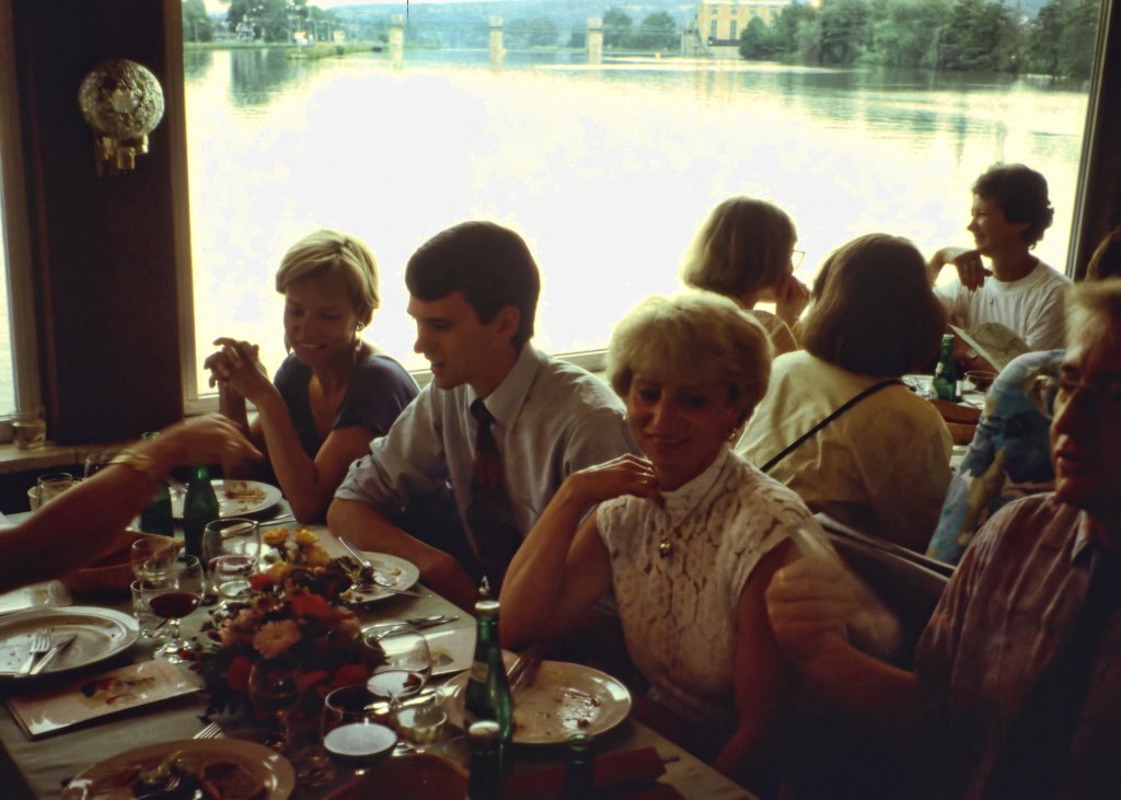 The Höflichs were a family of four – father Peter, mom Gisela, brother Frank (14), and sister Eva (10), who owned a vineyard, or Weingut. After managing to put my luggage in their car, a BMW sedan with just enough trunk space for my luggage, we ate lunch inside the nearby castle, and I somehow managed to say Schloss properly, thus giving them false hope about my German language skills. Still, the Höflichs quickly reached the limits of my German language skills. Gisela and Frank spoke English very well, while Peter and Eva did not. Eva hadn’t gotten to the grade level where they started but would in the next year or two. The Gaths, knowing all too well how much German I spoke, had sent me along with their copy of the German-English dictionary. So that quickly came out as the Höflichs asked the usual questions. What did I do back in America? Did I like my last family? Why did I want to live in Germany? Why hadn’t I learned more German before arriving?